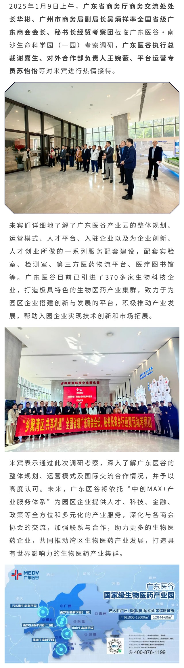 全国省级广东商会会长经贸活动考察团一行莅临广东医谷考察调研
