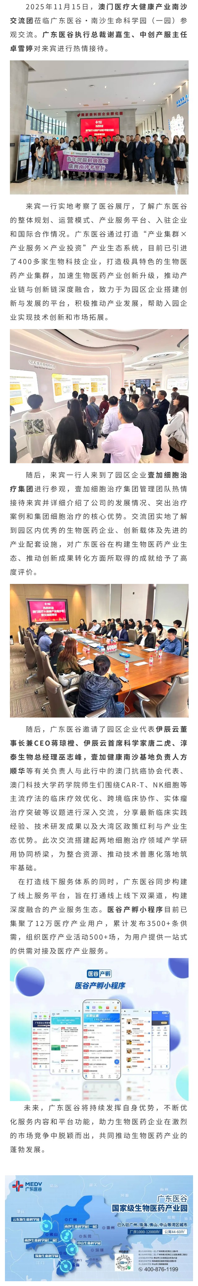 澳门医疗大健康产业南沙考察交流团莅临广东医谷参观交流