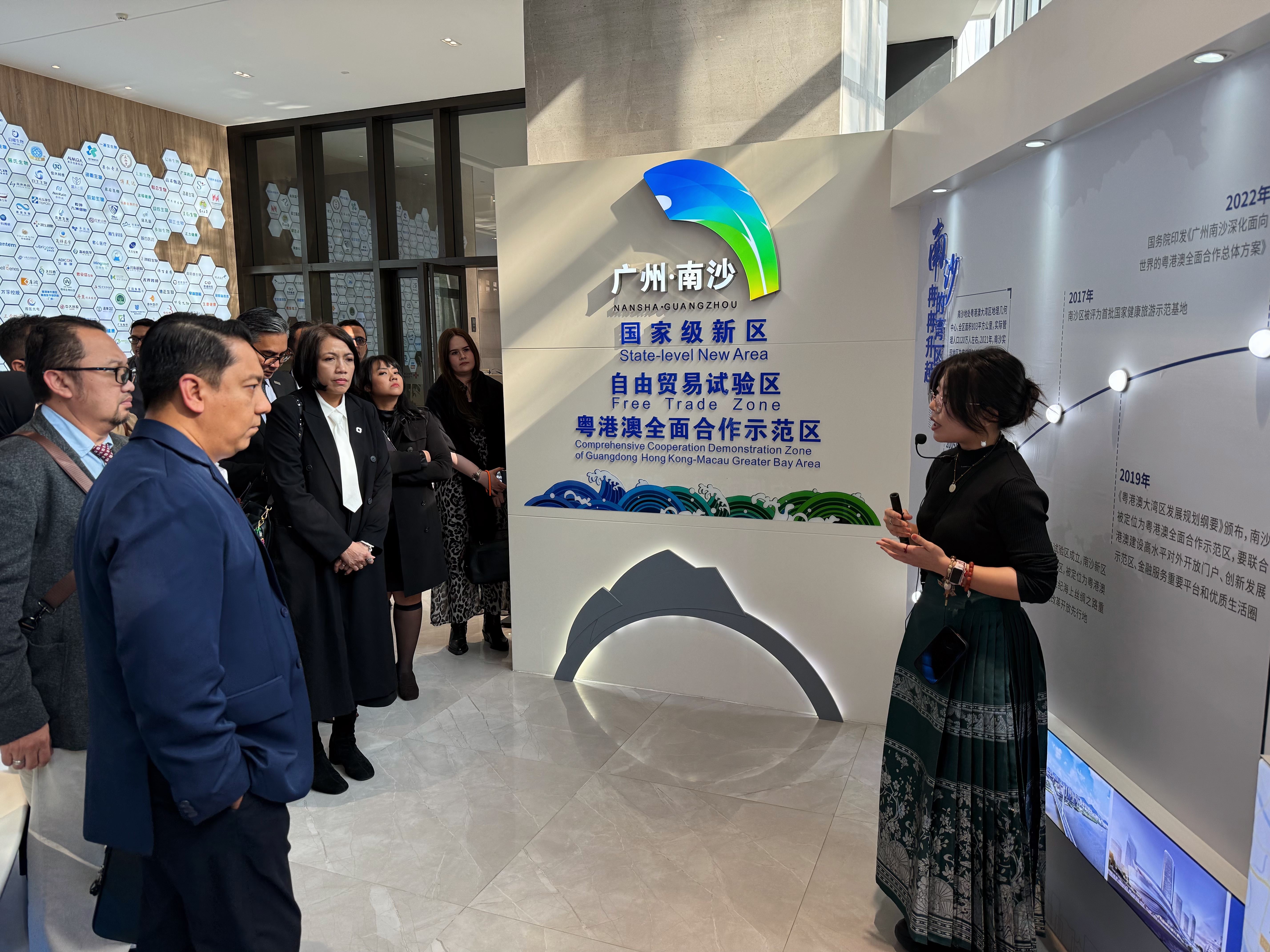 代表团一行实地考察了产业发展展厅,了解广东医谷的整体规划、运营模式、产业服务平台、入驻企业和国际合作情况。广东医谷通过打造“产业集群×产业服务×产业投资”产业生态系统,已吸引了400余家生物医药企业落户,并依托国际医疗产业创新中心和全球30余个国家地区建立交流合作,持续促进国内外医疗信息与资源的互联互通。