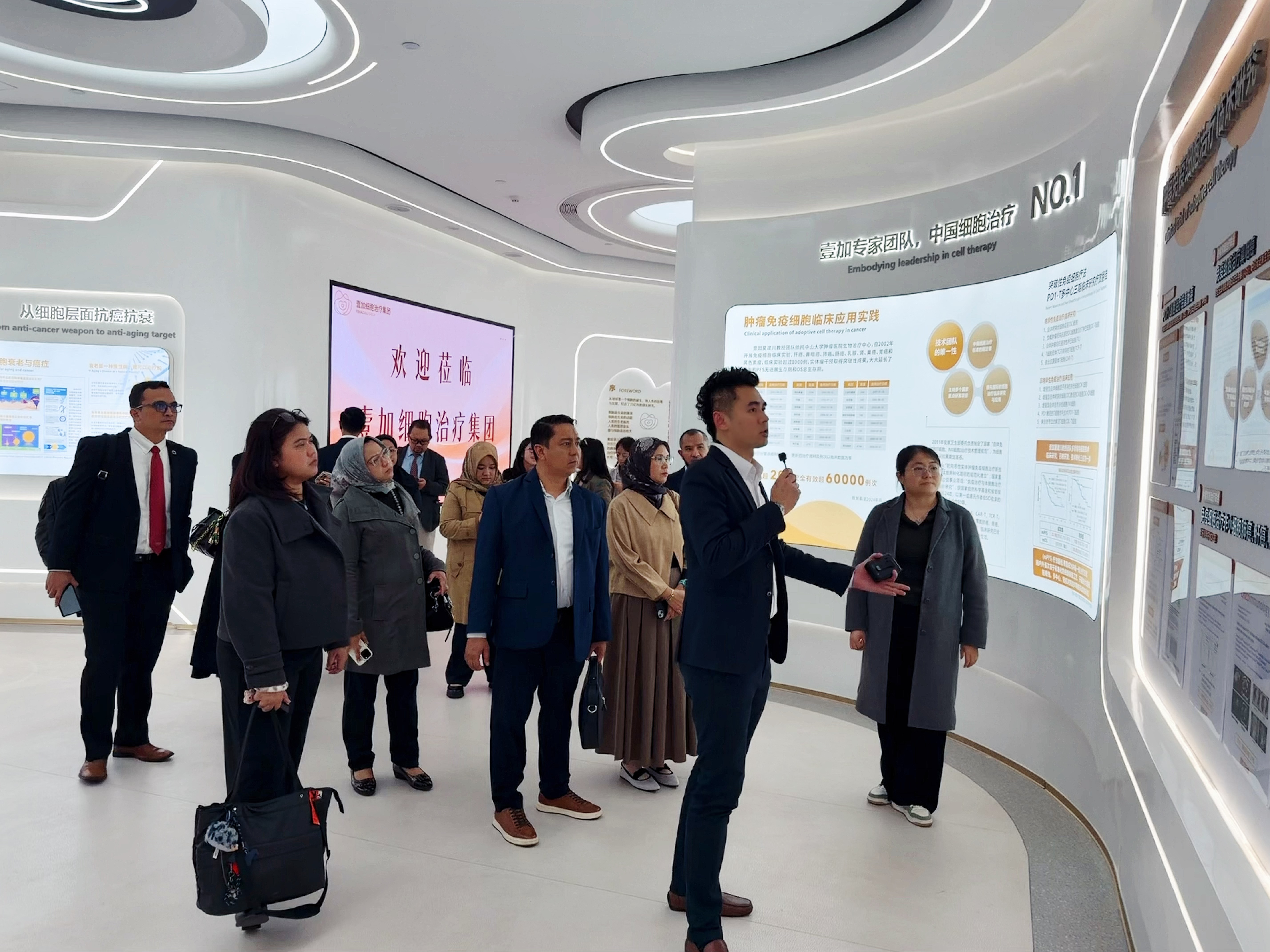 随后,代表团一行来到园区企业广东壹加再生医学研究院有限公司进行考察。广东壹加再生医学研究院有限公司自2019年成立以来,持续深耕免疫细胞储存与临床应用技术,已成长为国家级高新技术企业和专精特新“小巨人”企业。其核心围绕高活性抗肿瘤免疫细胞的制备与服务展开,产品在肿瘤防治、心脑血管健康及骨关节修复等方面具有应用前景。近年来,公司实现快速增长,并在免疫细胞扩增效率、活性保持及协同培养系统等关键技术上取得行业领先突破。