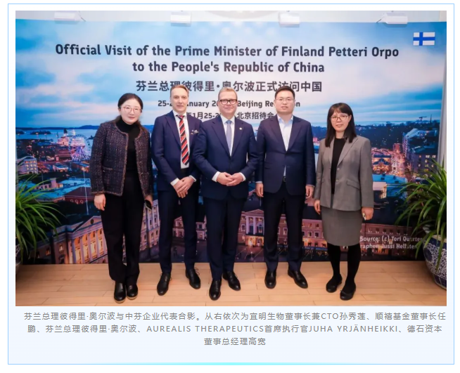 中芬创新企业合作委员会第六次会议在商务部举行,政企各界围绕创新领域合作展开深度探讨并签署多项商业协议。其中宜明生物董事长兼CTO孙秀莲博士与芬兰AUREALIS THERAPEUTICS首席执行官JUHA YRJÄNHEIKKI先生等代表各方签署协议,开展细胞与基因治疗药物项目(临床三期以及工艺验证阶段生产等)多边合作。签约仪式在中国机电商会副会长白雪峰与芬兰驻华大使馆公使衔参赞田马可(Marko Tiesmäki)共同见证下完成。
