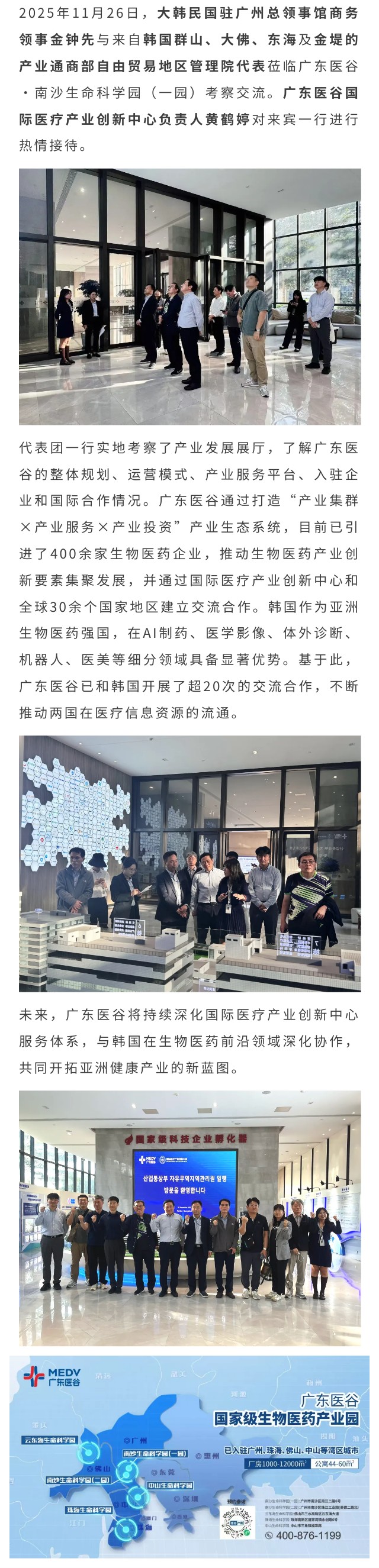 韩国产业通商部自由贸易地区管理院一行莅临广东医谷考察交流